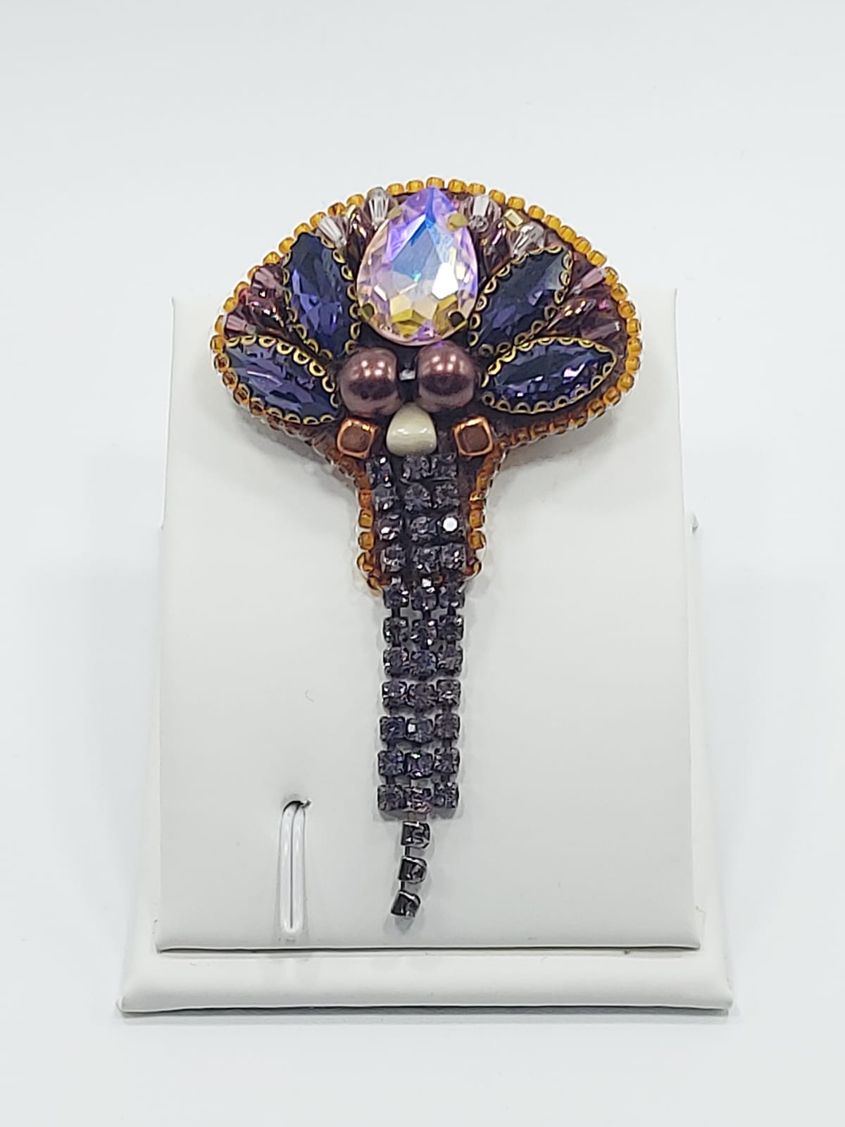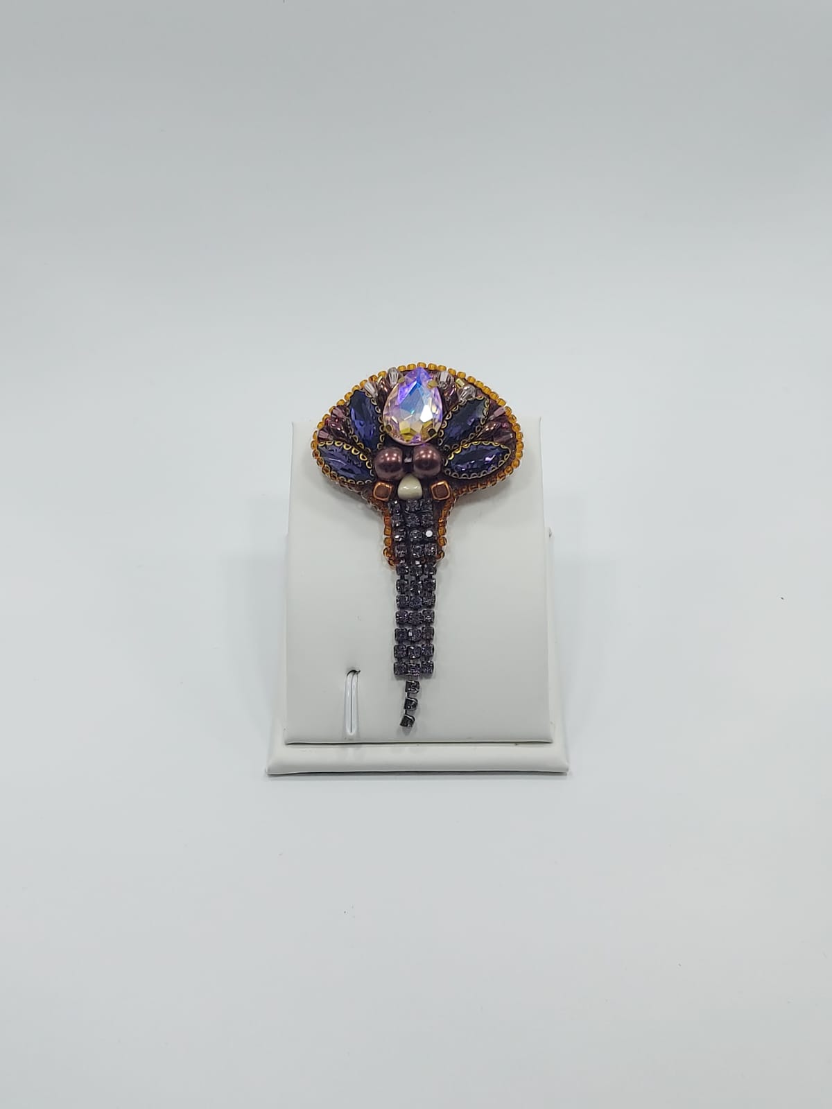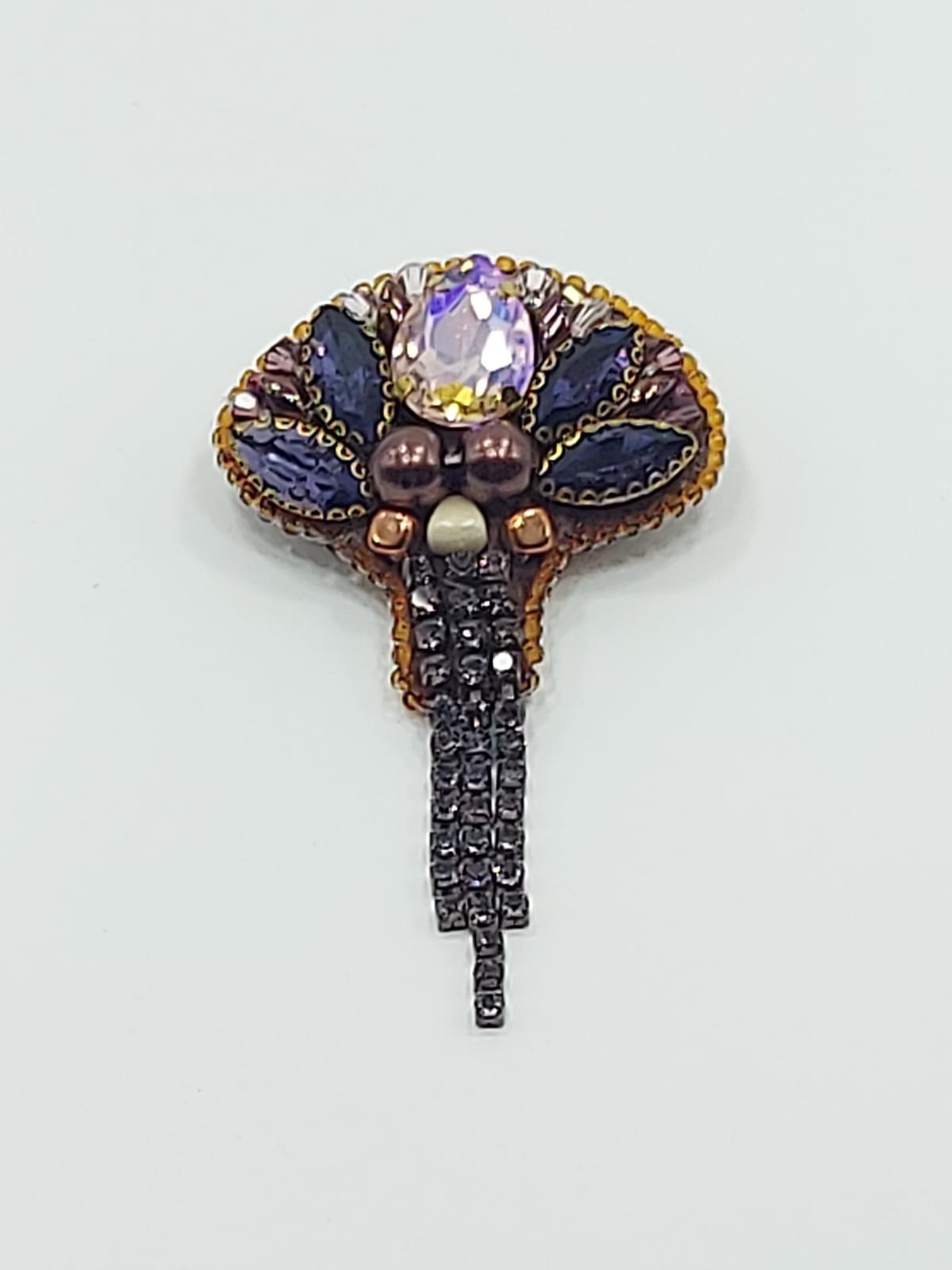 პეპელა – ბროშის მასალა: ჩეხური ბროლო, ჩეხური მძივი, იაპონირი ბისერი, ფრანფული ფარფლები (პაიეტკები), ხავერდი.
