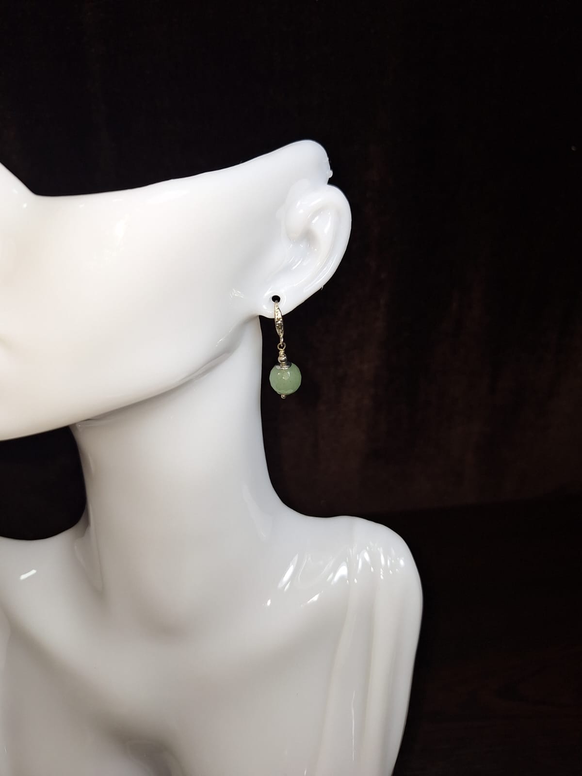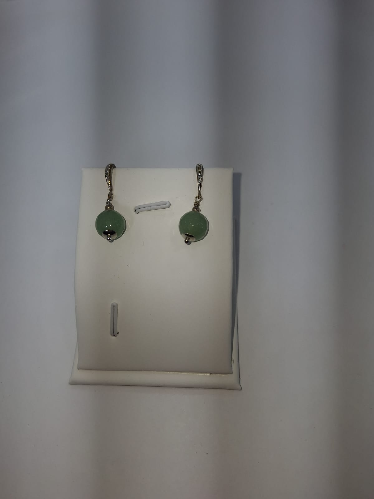 მასალა: სალათისფერი ონიქსი, ფურნიტურა და საყურის შესაკრავი ანტიალერგიული ვერცხლისფერი მეტალი.