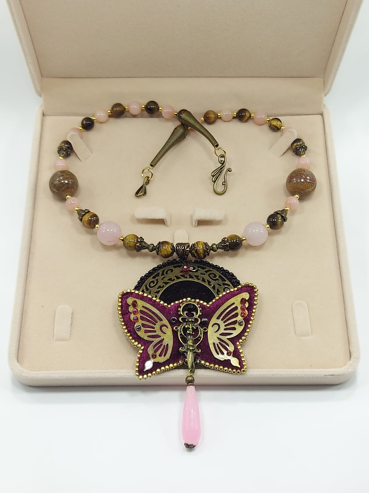 ყელსაბამი-ჩოკერი – ბორდო პეპელა ხალცედონით