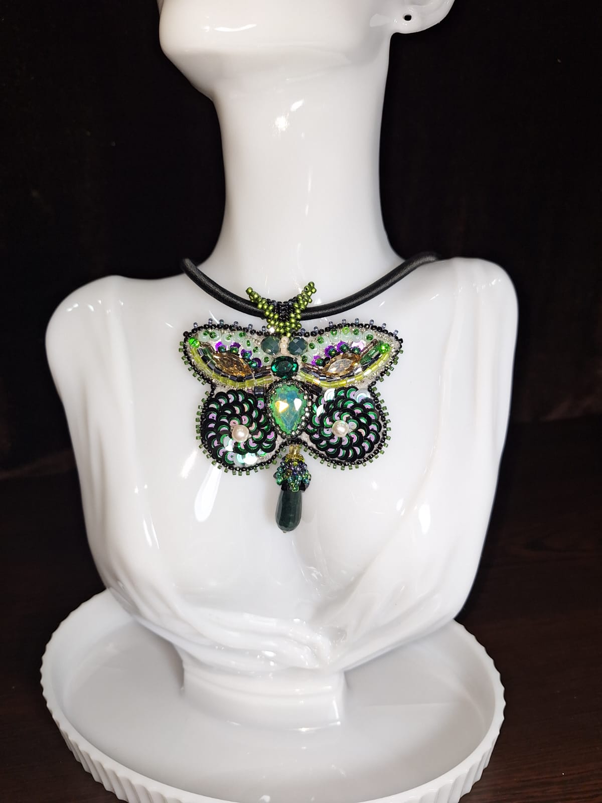 / ყელსაბამი-ჩოკერი – მწვანე პეპელა ხალცედონით