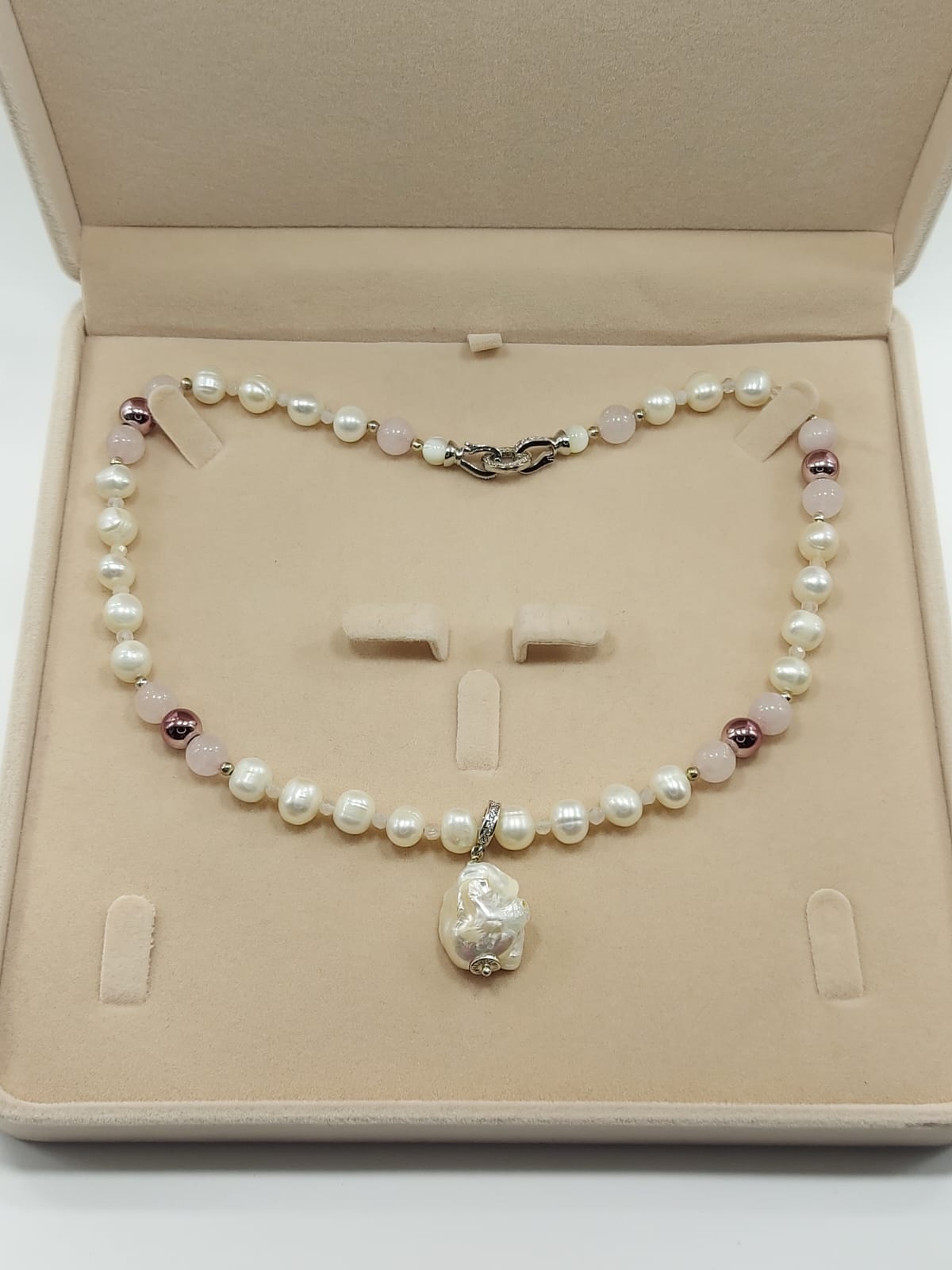 nec5809 (8)მარგალიტისა და ვარდისფერი კვარცის ყელსაბამი