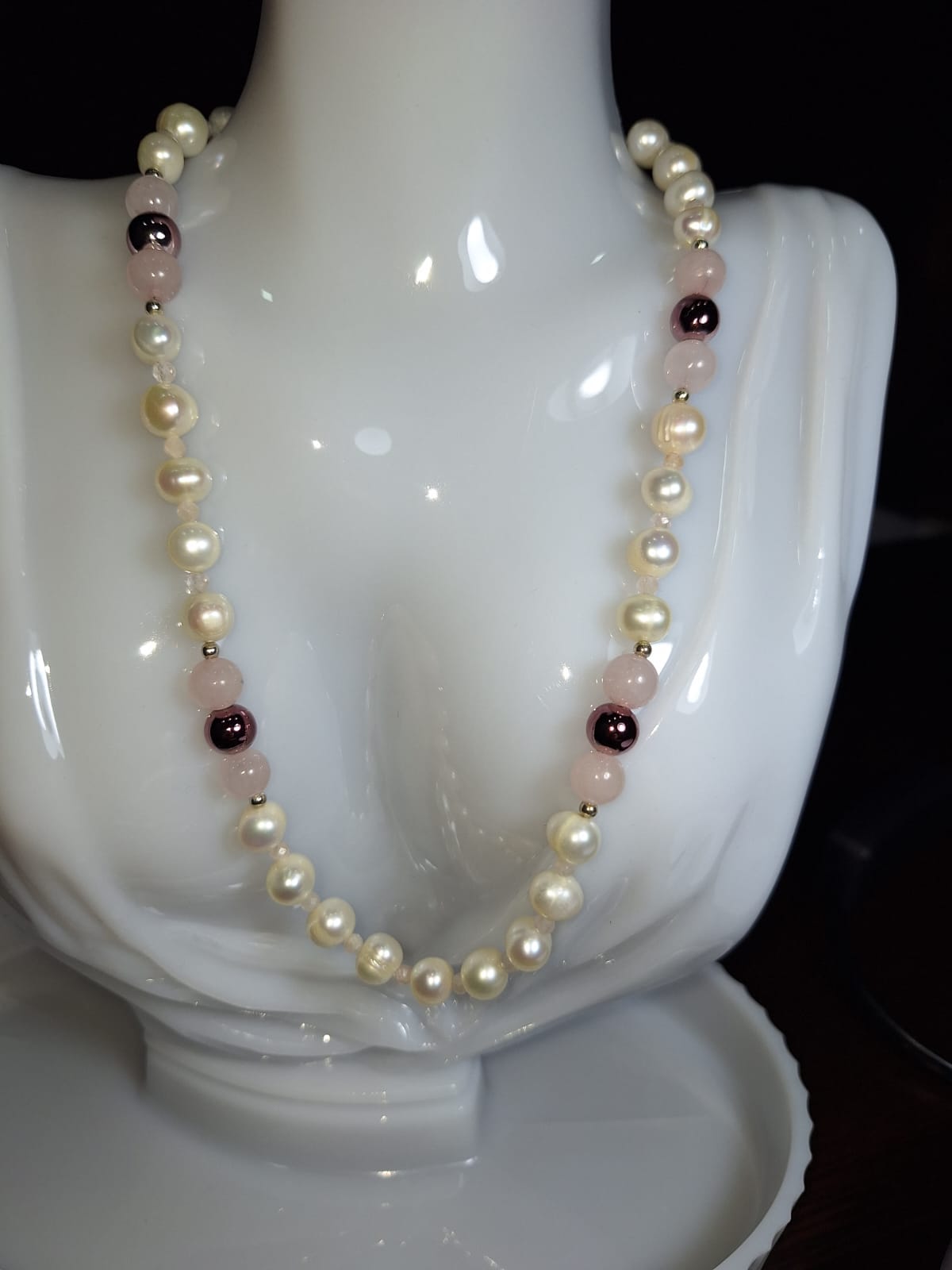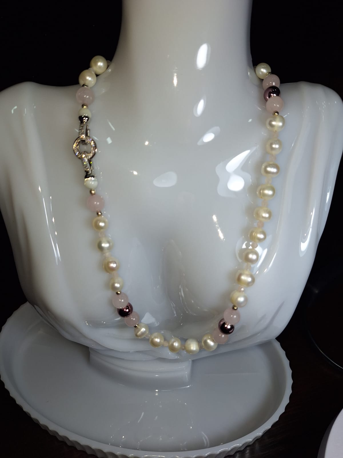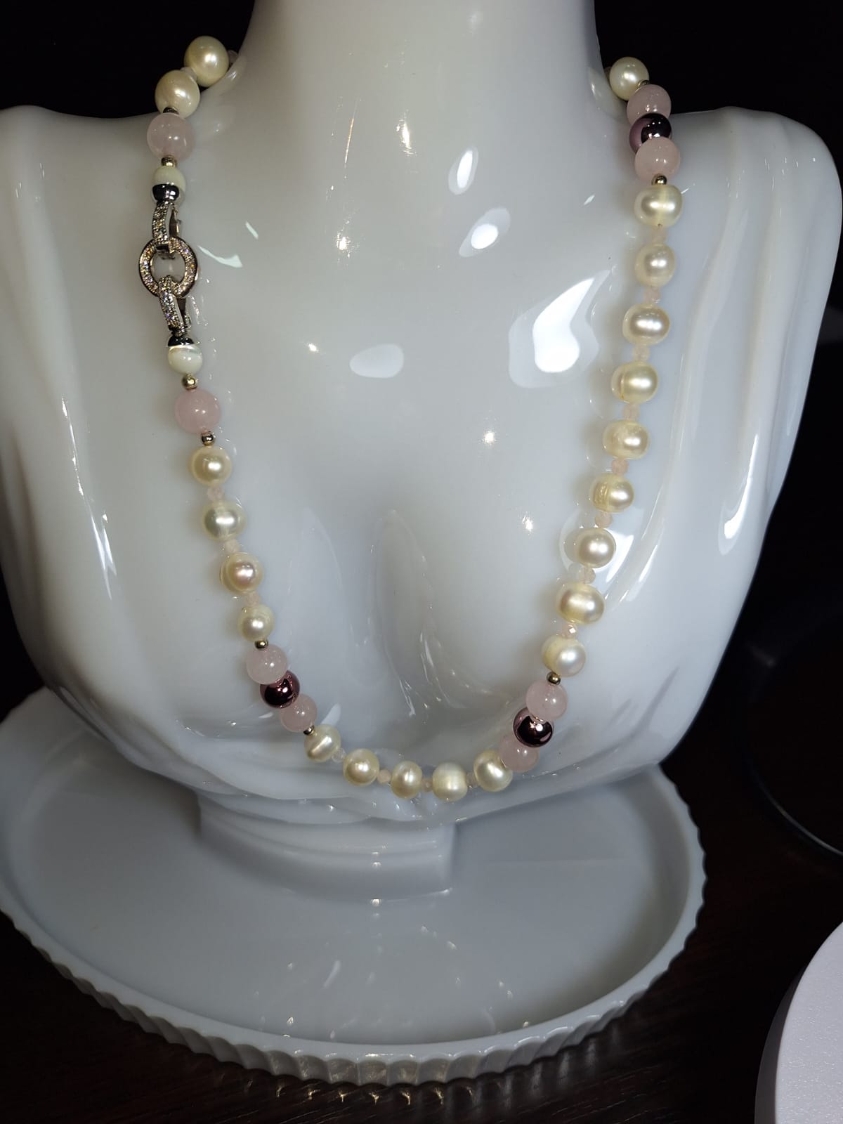 მარგალიტისა და ვარდისფერი კვარცის ყელსაბამი