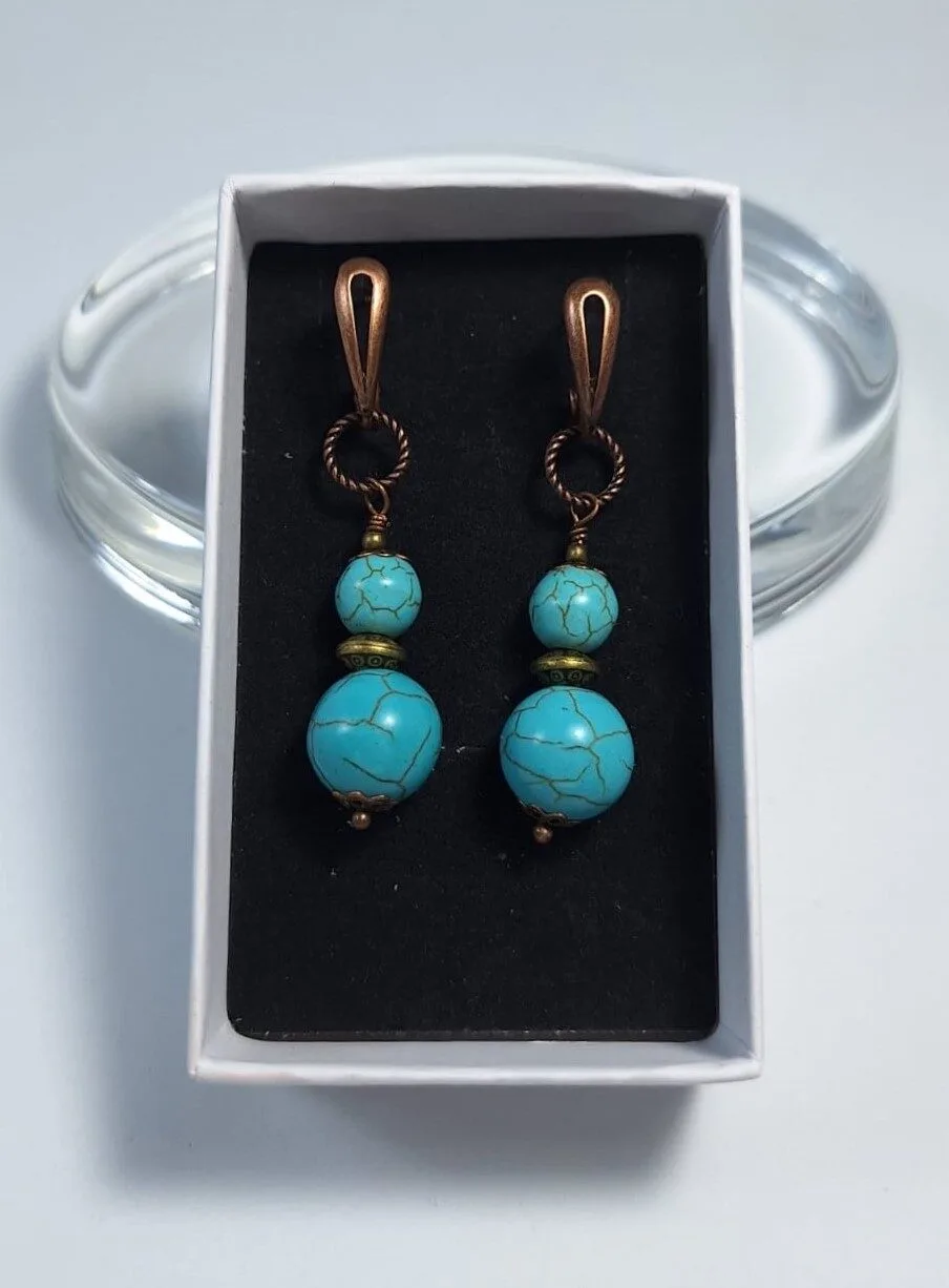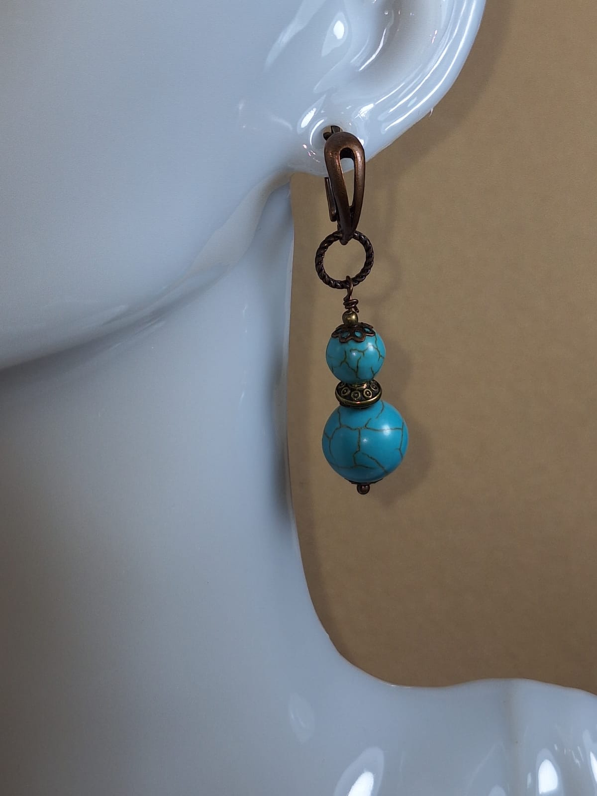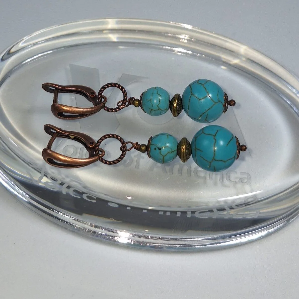 მასალა: ფირუზი, სპილენძის უჟანგავი ფურნიტურა და ინგლისური სტილის საყურის შესაკრავი.