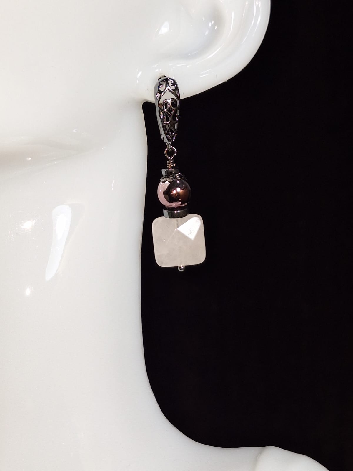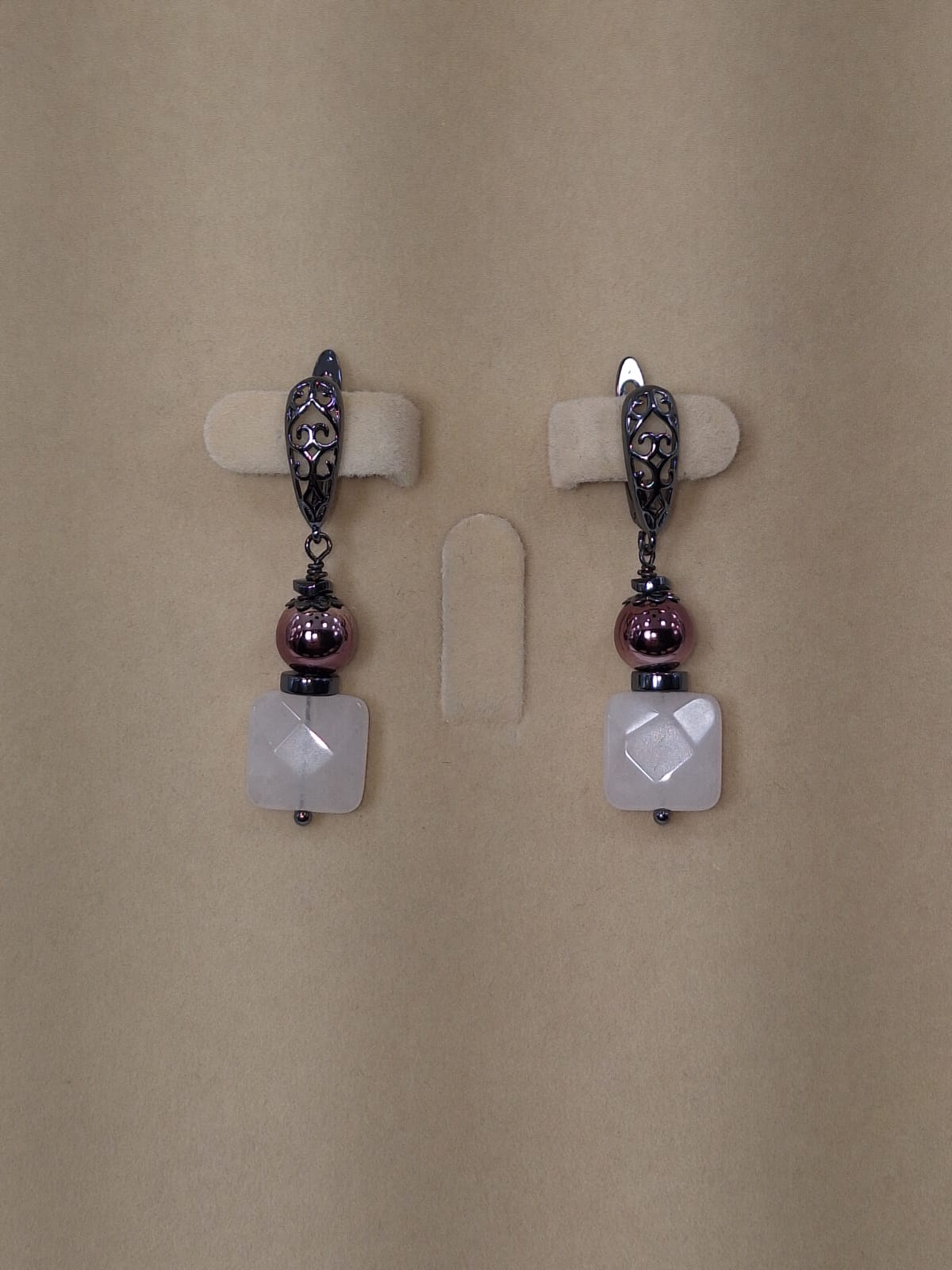 ear4547 2საყურე – ვარდისფერი კვარცი და ჰემატიტი