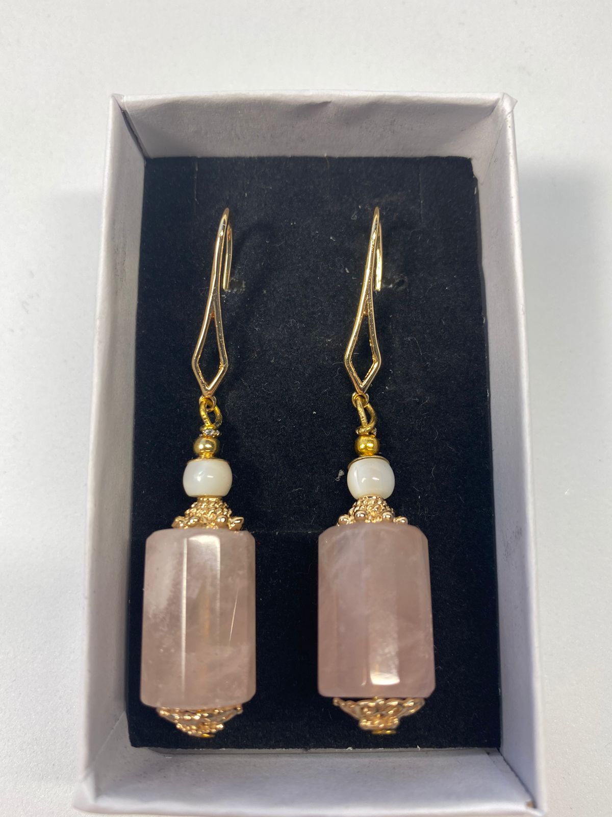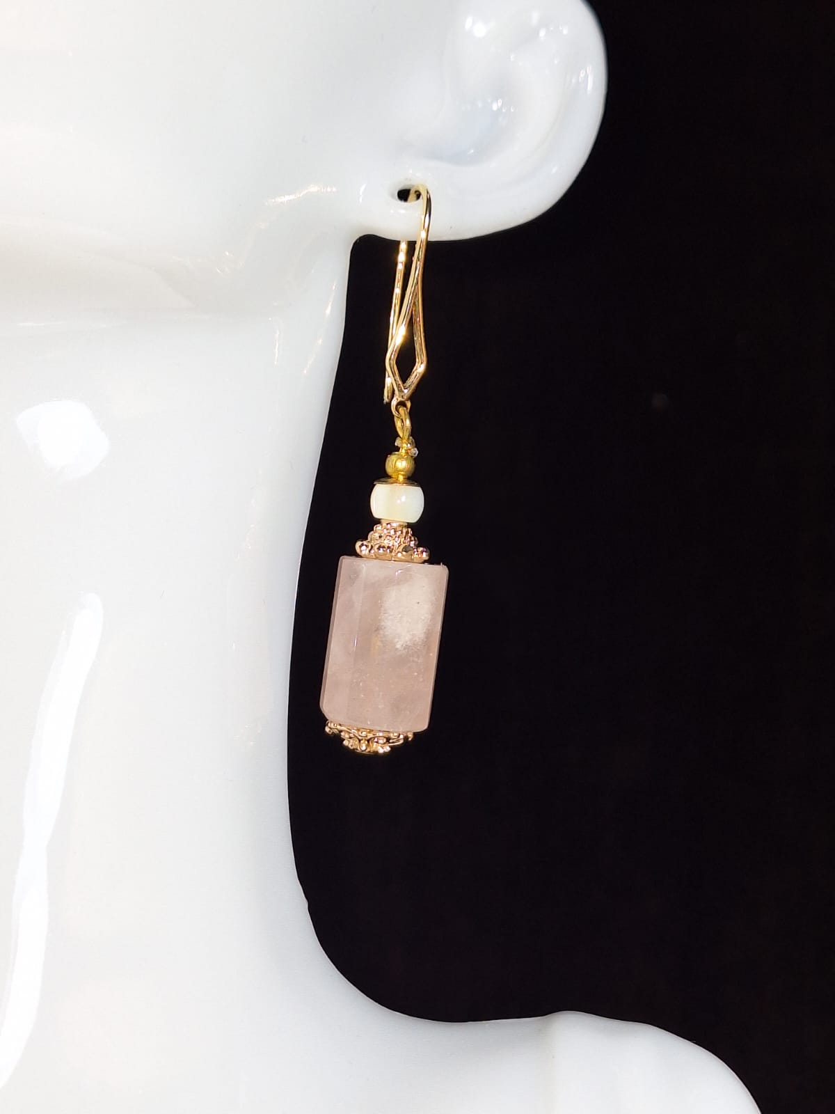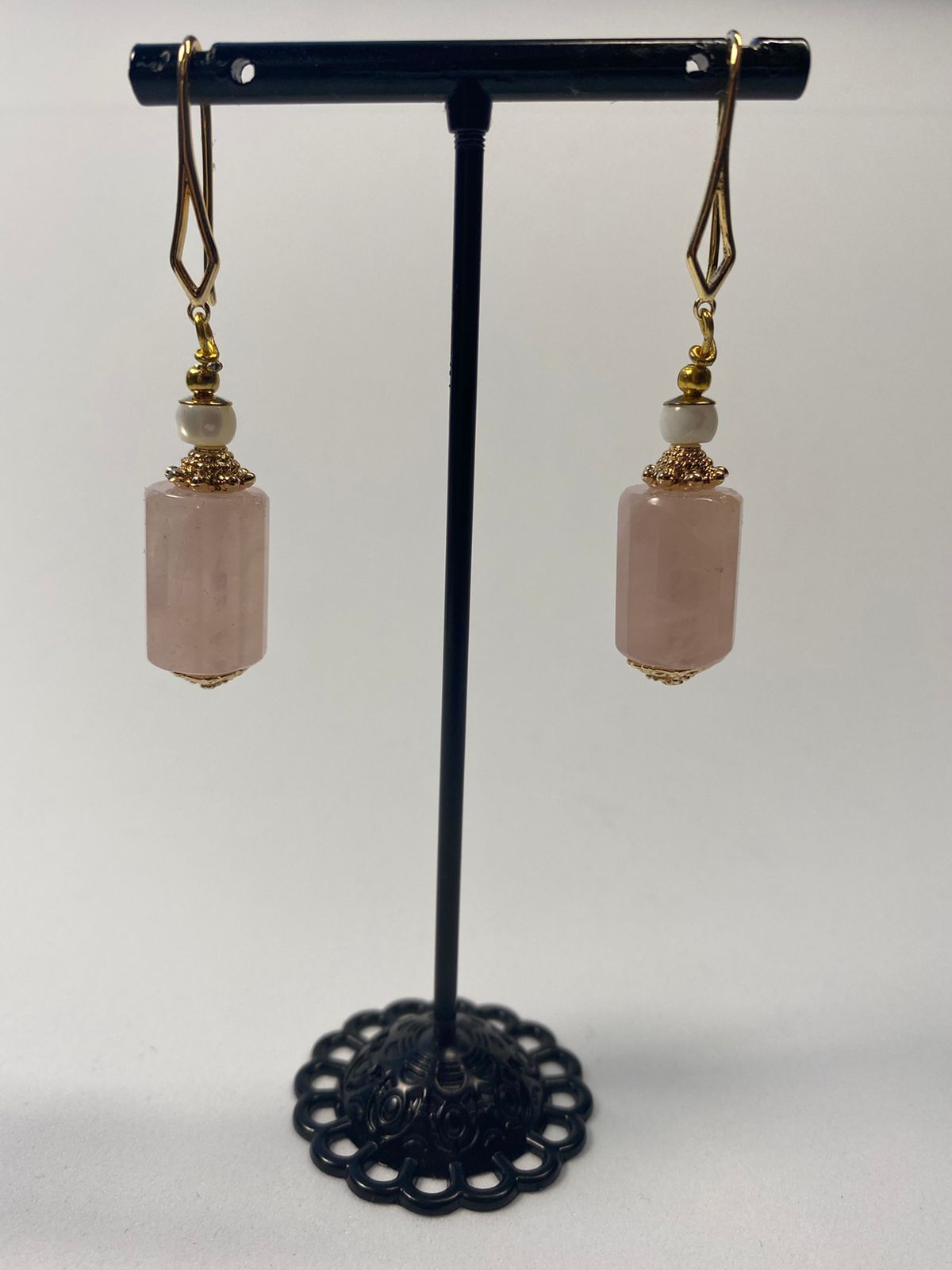 ear4713 4საყურე – ვარდისფერი კვარცი თეთრი სადაფით